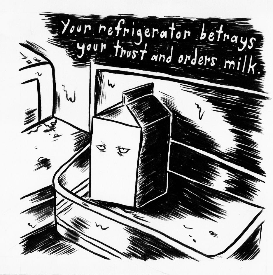 I never know how paranoid to be. How many banal objects can be hacked in globally disruptive ways, and should we worry? Your refrigerator orders milk and betrays your trust. Your malware connects with his military-grade cyber weapon. Point to point. Lift her hips and get deeper inside. This is your ocean score. This is your digital life. This is their president, their cold war, their share price. Your misconception. Your narcissism. Your ghost in their shell or theirs in yours. Hollywood scripts run through Epagogix checking their score like a demon of serial composition. Read and spit. Read and spit. We are all data here, especially our art. We are all up there in the cloud until the flash crash. Is this too far? I can’t know, it’s forgotten.