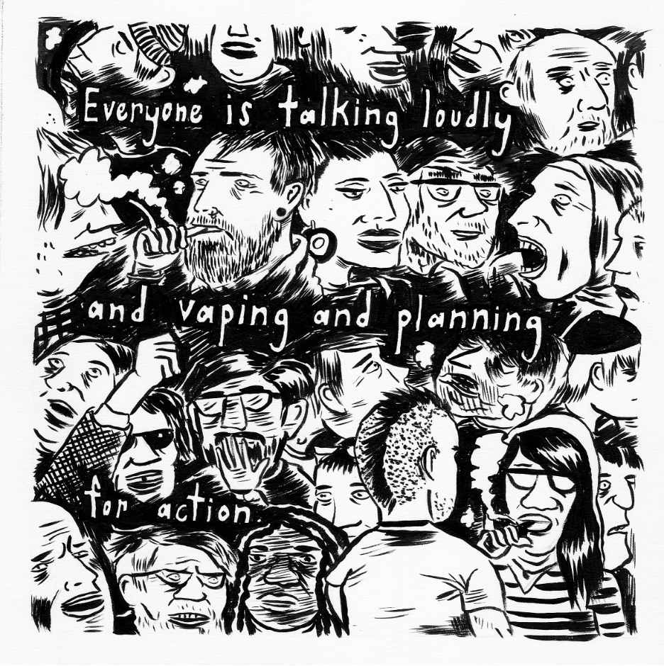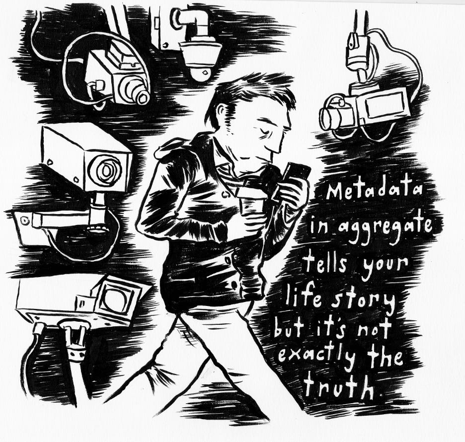 In 2013 Dave Eggers writes The Circle, a story about a world where we slowly give up our right to privacy in exchange for other rights—the right to health care, the right to education. We give up autonomy in exchange for total democracy that is also totalitarian. In 2017 the book is almost true. In 2017 I have watched Citizen Four and Donald Trump’s inauguration. There isn’t tape over my webcam only because I think I’m not doing anything of interest even though I also know this is wrong. ‘Metadata in aggregate’, Jason Appelbaum tells the Occupy security workshop, ‘tells your life story, but it’s not exactly true.’