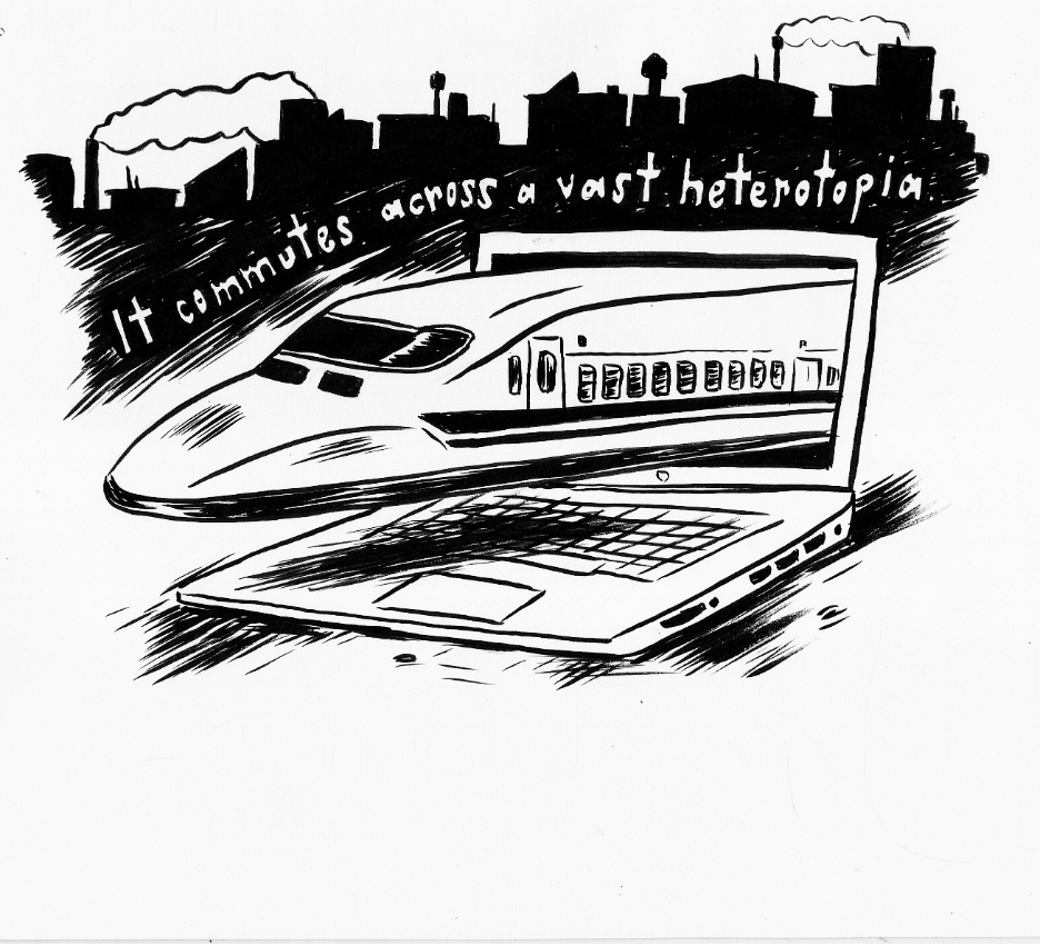 In the second decade of the twenty-first century the time machine looks less like a Tardis and more like a shinkansen. It commutes across a vast heterotopia; a shopping mall, a library, a party, a family, fascism, outrage, 1968 and 1945 and Japan and the future. The movements of the machine change the way we think and behave and this is good, bad and inevitable. It is not a thing to be paranoid about until it is.