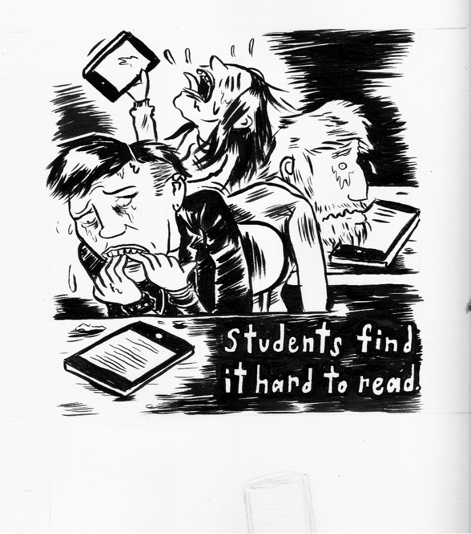 The time machine favours vertical journeys. By the time I’m a teacher at a university I’m also a teacher in the cloud, which is a space for storing time and memory. My students need the machine for their studies. The first year I teach is the last year of paper assignments and I’m glad because I spill tea on paper, which is trees. I scorn my older colleagues who mourn its passing. Why be sentimental about paper? Be sentimental about forests. It takes me some time to understand they are sentimental about reading.